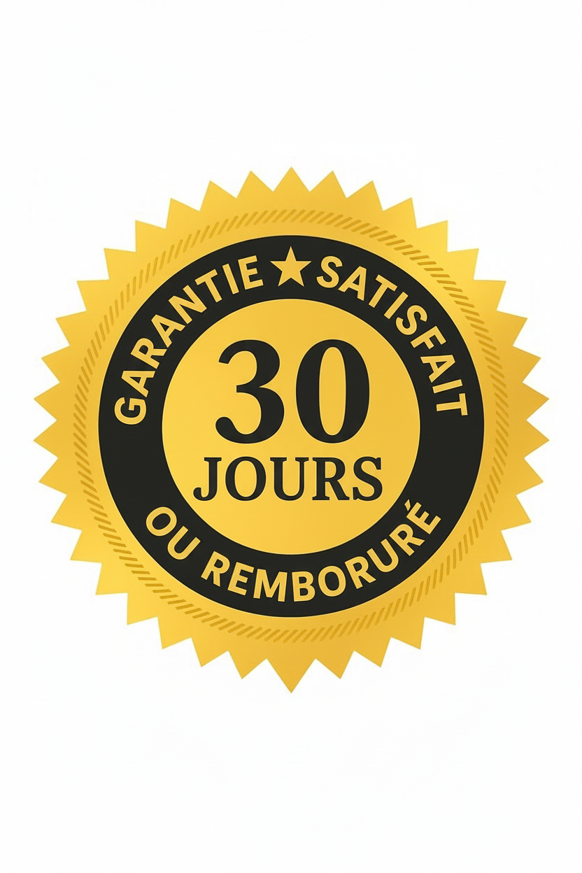 Votre satisfaction est notre priorité. Si, pour quelque raison que ce soit, vous n'êtes pas entièrement satisfait de votre achat, vous pouvez demander un remboursement intégral dans les 30 jours suivant la date de livraison. Pas de questions gênantes, pas de complications : nous voulons que vous vous sentiez en sécurité et à l'aise chaque fois que vous choisissez nos produits.